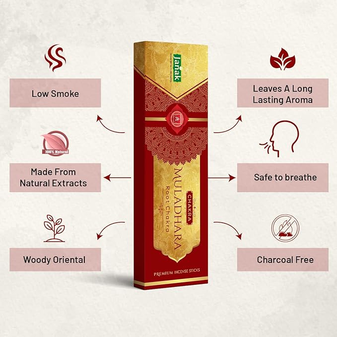 - Why Janak Incense Sticks: Janak’s Chakra Muladhara agarbatti is a low-smoke incense stick. All our incense sticks are made from the purest ingredients that are obtained directly from the source. All our incense sticks are manufactured after thorough in-house research and rigorous quality testing.